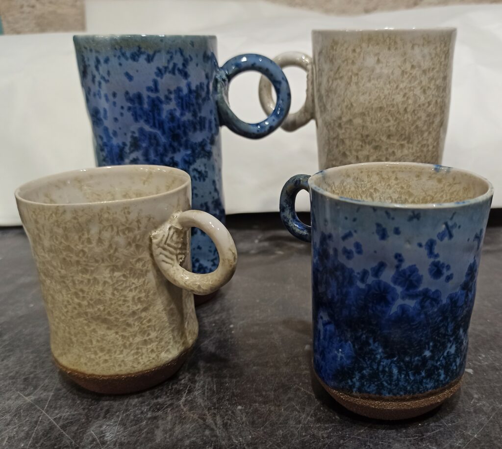 Je réalise des poteries alimentaires: tasses, bols ou plats. Tous différents, rien n’est identique dans mes séries.